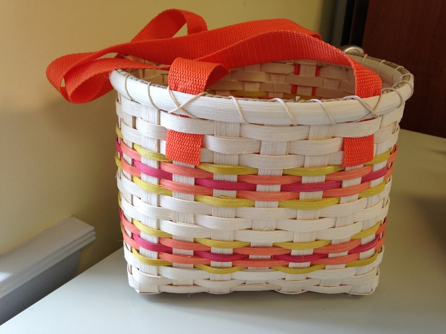 This basket is the right size to carry your water, lunch or small project in. There will be a variety of handles and colors to choose from.